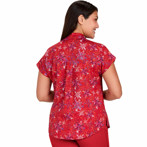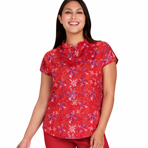Esta blusa médica de edición limitada es parte de una colaboración con la marca Etta Vee, creada por la artista Jessi Raulet. Con un diseño colorido y contemporáneo, cuenta con escote abierto, mangas cortas, silueta estilizada y un bolsillo en el pecho. Puede usarse por dentro o fuera del pantalón.