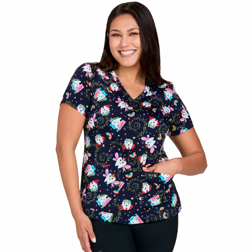 • Top estampado elástico de dos bolsillos para mujer Leslie de Koi Basics