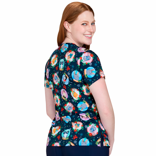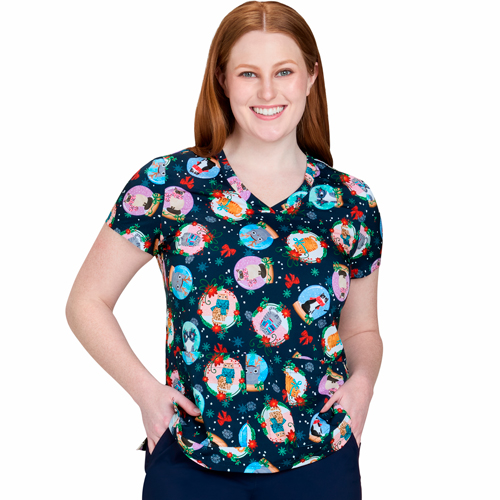 Esta blusa médica de edición limitada, parte de una colaboración con Planet Cat de la artista Angie Rozelaar, combina un diseño deportivo y colorido con un espíritu alegre inspirado en los gatos. Cuenta con escote en V, dos bolsillos frontales y aberturas laterales para mayor comodidad y movilidad.